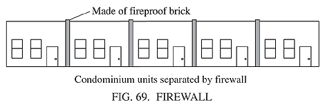 a partition of fireproof material intended to contain an outbreak of fire to a limited area.